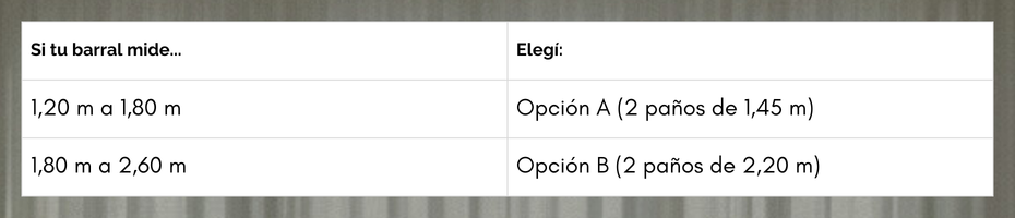 Para que el fruncido quede perfecto y la cortina luzca como en nuestras fotos, elegí el ancho según tu barral: