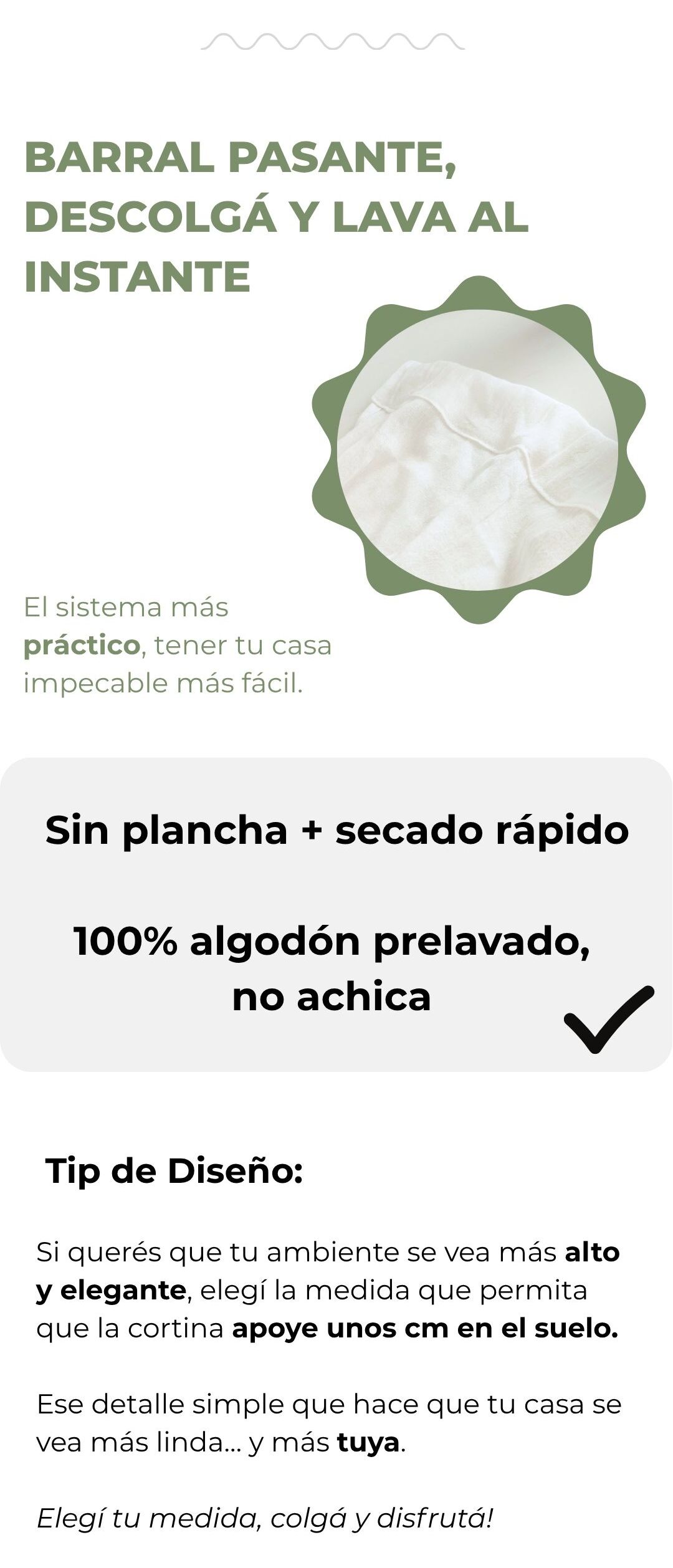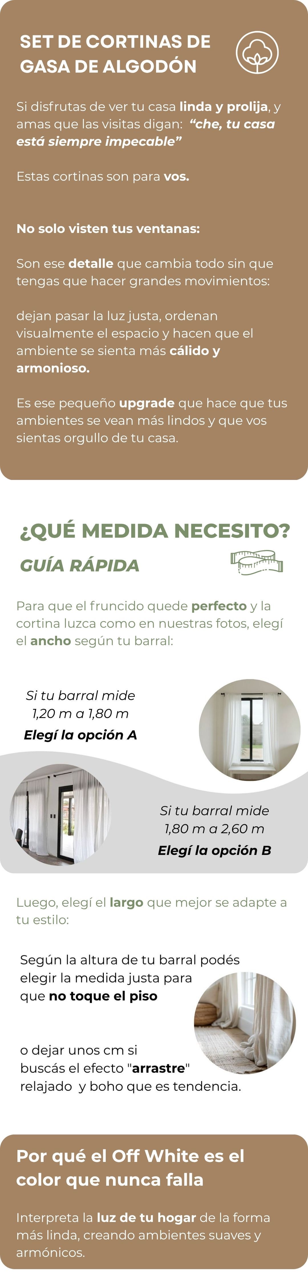 A: Para barrales de 1,20m a 1,80m (2 paños de 1,45m c/u) B: Para barrales de 1,80m a 2,60m (2 paños de 2,20m c/u)